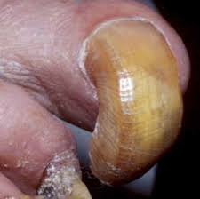 UÑAS EN VIDRIO DE RELOJ: Muestran un incremento de la convexidad y angulo de lovibond, que supera los 180º. Las patologías acompañantes son enfermedades cardiacas y pulmonares. Estas uñas se asocian a dedso en "palillo de tambor" que estos se observan en pacientes con cirrosis hepática, enfermedades de tiroides, colitis ulcerosa, ferropenia y algunos tumores malignos.