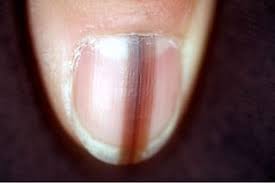 - UÑAS DE TERRY: coloración blanquecina de la lúnula con la zona distal rosada con estriaciones longitudinales. Se asocia a cirrosis hepática.